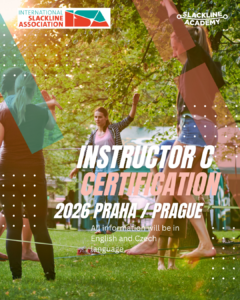 After that, you don’t need to retake the entire course—just a two-hour renewal course, which I will also offer online. Slackline is a young sport that evolves very quickly, both in terms of performance and technique. Over the 15 years I’ve been involved in slacklining, the methods of setup and usage of lines have changed several times, based on new findings and unfortunately, incidents as well. For this reason, all slackline educational certificates issued in the Czech Republic and abroad have a limited validity. The renewal course is designed to introduce you to new techniques, research, and potential dangers that need to be prevented. Thank you for your understanding.